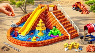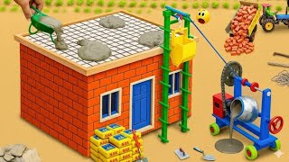Building Colorful Mini Tractor House - Brick Walls & Rooftop Pool | DIY Construction Science Project