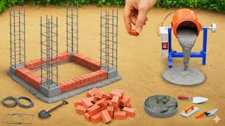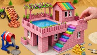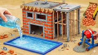 Building a Modern Brick House with a Mini Pool Using a Tractor | DIY Science Project |MinMin Tractor