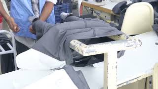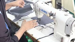 The sewing process in the garments industry involves stitching together fabric pieces using a sewing machine to create the final garment according to the design specifications. This includes operations like seam sewing, attaching buttons and zippers, hemming, and finishing details.