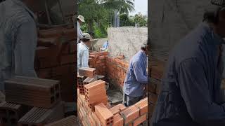 Lay each brick and drop the concrete as you go. #constructionengineer #turnkeyhouseconstruction #...