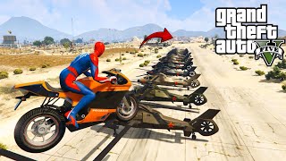 Superheroes Bike 🏍️ Race in GTA 5 | Spider-Man vs Hulk vs Cap | Epic Mega Ramp Challenge#gta #shorts