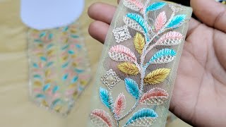 Make with just two colors of thread, beautiful neck design/ embroidery neck design/ hand work emb...