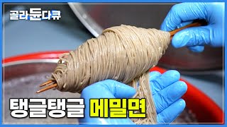 직접 뽑은 생면으로 만듭니다. 오픈 전부터 문전성시! 추위에도 줄 서서 먹는 메밀국수 맛집│한라산 닮은 고소한 들기름 비빔면과 새콤달콤 비빔냉면│제주도 서귀포│고향민국│#골라듄다큐
