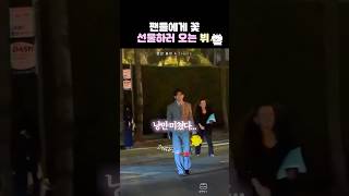 팬들에게 꽃 선물하러 오는 뷔