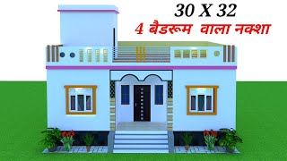 4 Bedroom House Plan | 30x45 4 Bedroom Ghar Ka Naksha | 4 Bedroom Home Plans Design | Vastu | Map ||