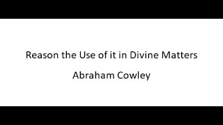 Reason the Use of it in Divine Matters - Abraham Cowley
