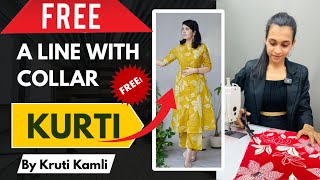 FREE A Line Kurti Cutting And Stitching Full Tutorial| Kurta cutting and stitching#alinekurti #kurti