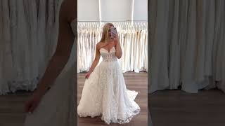 Strapless Tulle A-Line Wedding Dress w/Allover Schiffli Lace Appliqué with Sequins and Corset Bodice