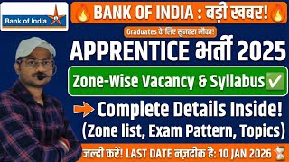 Bank of India Apprentice Recruitment 2025 | Zone-wise Vacancy, Syllabus & Exam Pattern | Full Detail