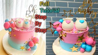 Baby Shower Cake Full Tutorial🩷🩵Pink And Blue Baby Shower Cake#babyshowercake#girlboycake#viral#cake