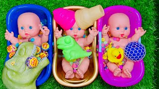 3 Baby Dolls Bathtub Fun with Candy, Soap and Chocolates | Funny ASMR Challenge Video for Relaxing