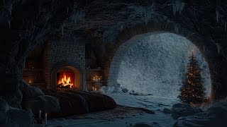 Snowstorm Outside a Cozy Stone Cabin | Fireplace & Blizzard Ambience for Sleep, Reading & Relaxation