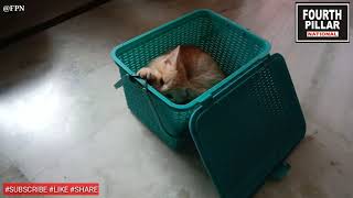 KITTEN STRUGGLES TO UNTIE THE ROPE TIED TO HIS CARRY BAG