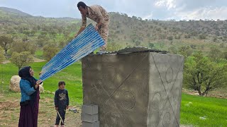 "Building the roof of the Sakineh toilet with the help of the videographer and Mohammad's brother"