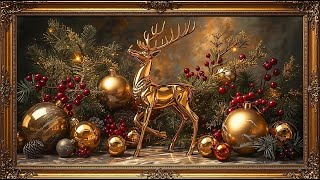 Santa's Reindeer Gold Frame TV Art 4K Vintage Christmas Screensaver with frame, framed Christmas Art