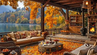 Cozy Autumn Porch CafΓ© by the Lake π Warm Fireplace & Deep Jazz for Stress Relief and Calm Study