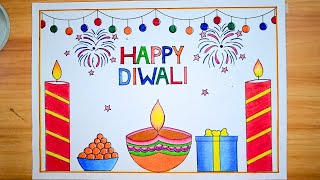 Easy and Simple Diwali Drawing| Beautiful 😍 Diwali Card Drawing| Diwali DIY Drawing| Diwali Poster..