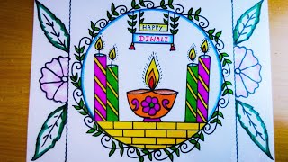 Diwali Drawing In Circle / Dipawali Drawing / Happy Diwali Drawing /Diwali Festival Drawing / Diwali