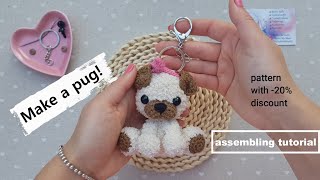 Crochet pug, small dog keychain, fluffy mini dog