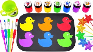 Oddly Satisfying Video | DIY Decorating 6 Ducks with Rainbow Star Candy and Glitter Slime | ASMR Cut