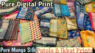 100% Pure Munga Silk Digital Print Ekkat Print Patola Print texture Prints Florals Prints Sarees