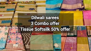 Diwali offer Sarees/Dola Silk/Crepe Silk/Tissue Soft Silk/Tusser Silk/Tusser Embroidery Silk Sarees.