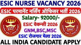 ESIC NURSING OFFICER VACANCY 2026 💥 ESIC STAFF NURSE VACANCY 2026 💥 ESIC PARAMEDICAL NURSING VACANCY