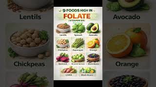 Foods Rich in Folate | Healthy Foods That Are High in Folate Vitamin B9 #shortsfeed #nutrition #diet
