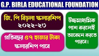 GP Birla scholarship 2022 | how to apply GP Birla scholarship 2022-23 online | WB scholarship 2022