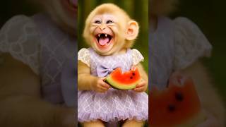 Monkey laughing with Apple ๐ #monkey #funnyanimal #hailuo #comedy #hailuocpp #cutemonkey #aivideo