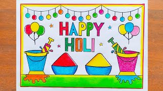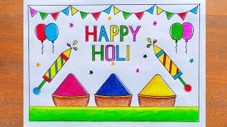 Holi Drawing Ideas/Happy Holi Poster Drawing Easy/Holi Special Colours Drawing/Holi Festival Drawing
