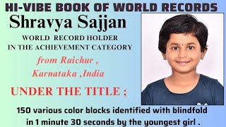 Shravya Sajjan l 150 various color blocks identified with blindfold in 1 min : 30 sec #HVBWR