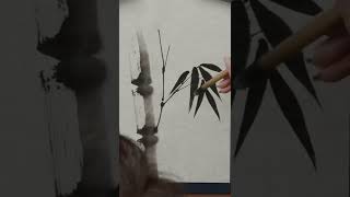 Painting a BLACK INK Bamboo in Sumi-e Chinese Brush Technique - #SHORTS by Koshu | Domestika English