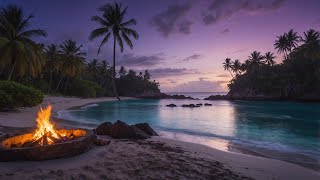 Tropical Island Bonfire at Dusk 🔥 | Peaceful Beach Sunset Vibes