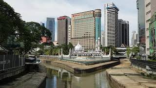 River of Life Masjid Jamek Mosque Day time and Night Blue Light Up Historic Kuala Lumpur City Centre