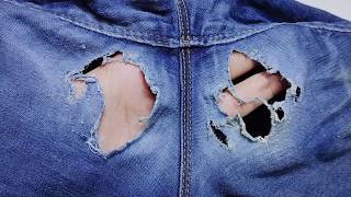 A magical solution to repair complex holes on jeans between the legs yourself without leaving a trac