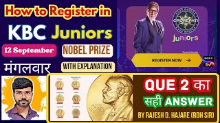 How to Register in KBC Juniors 2023? | 12 Sept 2023 | Que2✅ Answer || Nobel Prize Laurettes 🇧🇩🇨🇳🇳🇵🇵🇰