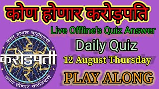 KHC 2021|| 12 August 2021 || Play Along|| Offline Quiz's Answer || рдХреЛрдг рд╣реЛрдгрд╛рд░ рдХрд░реЛрдбрд╝рдкрддрд┐