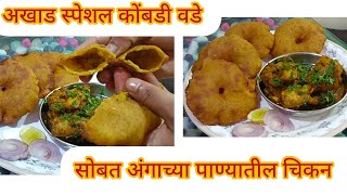 अखाडी स्पेशल टम्म फुगलेले वडे आणि अंगाच्या पाण्यातील चमचमीत चिकन | kombadivade | chiken |homecooks55