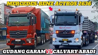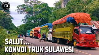 Konvoi truk dikawal Patwal,pick up, truk tangki, truk towing angkut excavator dan truk Pos Indonesia