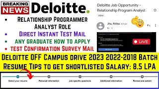Deloitte OFF Campus Drive 2023| 2022-2018 Batch Test Mail Selection Process How to Apply Resume Tips