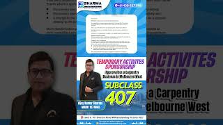 ✅ TEMPORARY ACTIVITIES SPONSORSHIP APPROVED – SUBCLASS 407 🇦🇺