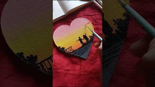 Very Easy Sunset Painting for Beginners #33 | Mini Canvas Painting | Acrylic Painting Easy