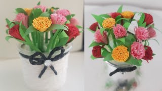How to make a cute flower bouquet from paper 💐|| Diy mini flower bouquet #trending #diy #artandcraft