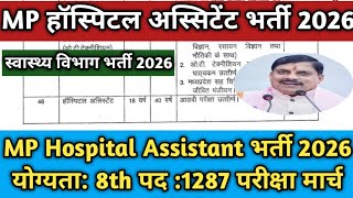 हॉस्पिटल अस्सिटेंट भर्ती परीक्षा 2026 | MP Hospital Assistant Bharti 2026 | योग्यता 8वीं कुल पद 1287