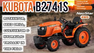 Kubota B2741S Tractor in Action | Rotavator, Seed Drill, Cultivator & Hydraulic Trolley in the Field