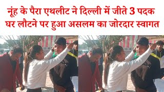 नूंह के पैरा एथलीट ने दिल्ली में जीते 3 पदक 🎁🏅 घर लौटने पर हुआ असलम का जोरदार स्वागत