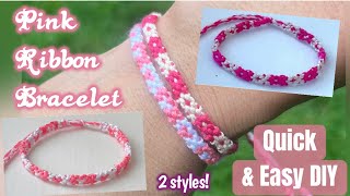 #beginnerfriendly Adjustable Pink Ribbon Bracelet- 2 styles #stepbystep #howtomake #easydiy #easydiy