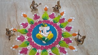Easy border rangoli designs | Friday rangoli | Lotus rangoli | Festival kolam| Lakshmi pooja rangoli