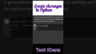 Acronym Project in Python #pythonfordatascience #Pythontutorial #pythonforbeginners #pythoncodehacks